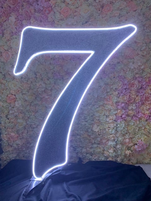 Our 4ft Giant Neon LED letter and numbers are self supporting and stand alone. Great for special birthdays 1,2,3,4,5,6,7,8,9,10,1 ,13, 16 ,18 ,21, 30 , 40 ,50 ,60, 65, 100 etc, you can also have initials such H&R , company names for corporate events"ABC LEISURE" and product launches.