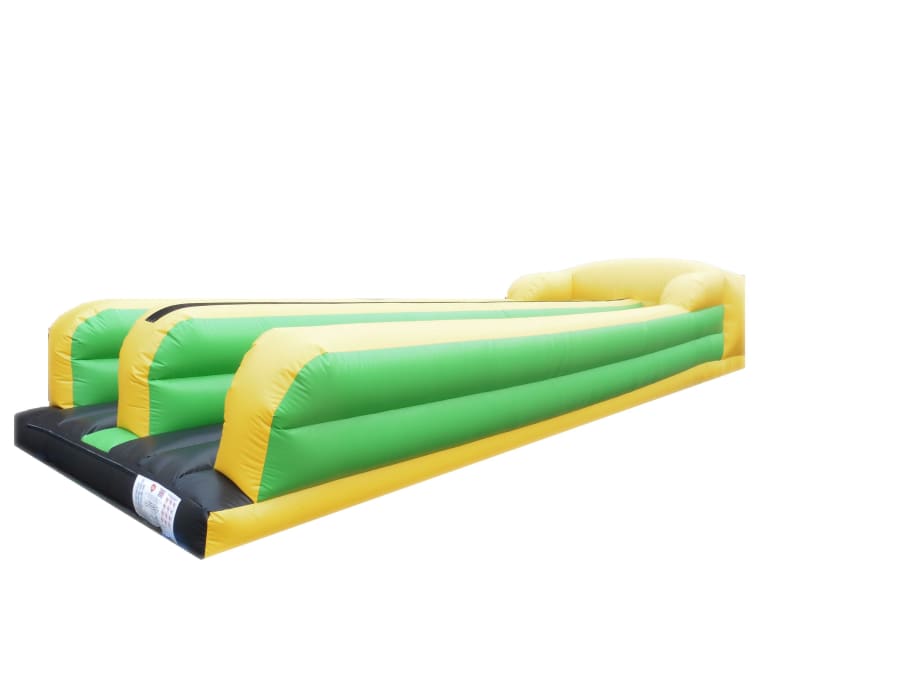 ABC Leisures latest inflatable Game to test your strength our Brand New for 2020 season Twin Lane Bungee Run 12ft wide and 35 feet long is a game your guests won't resist to have a go!