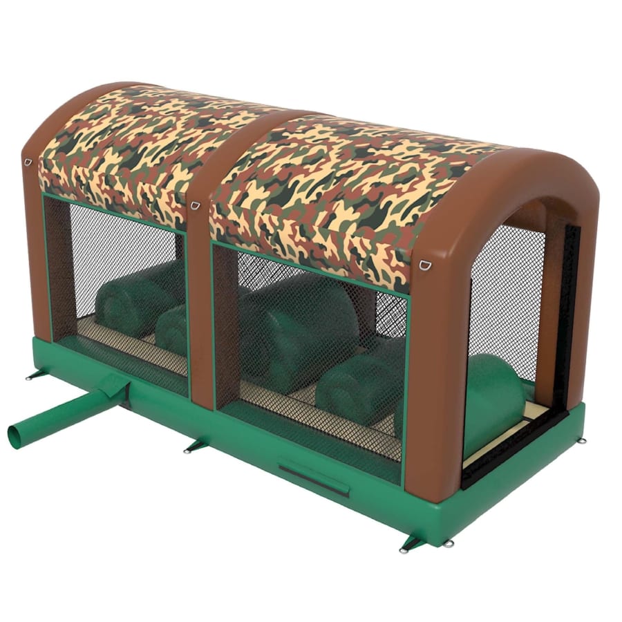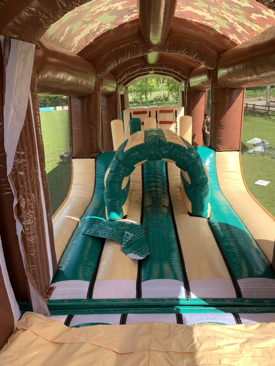 This Obstacle course has 8 blowers so please make sure you have an adequate power supply to feed this energy hungry army assault course you can hire a generator of us or supply your own.