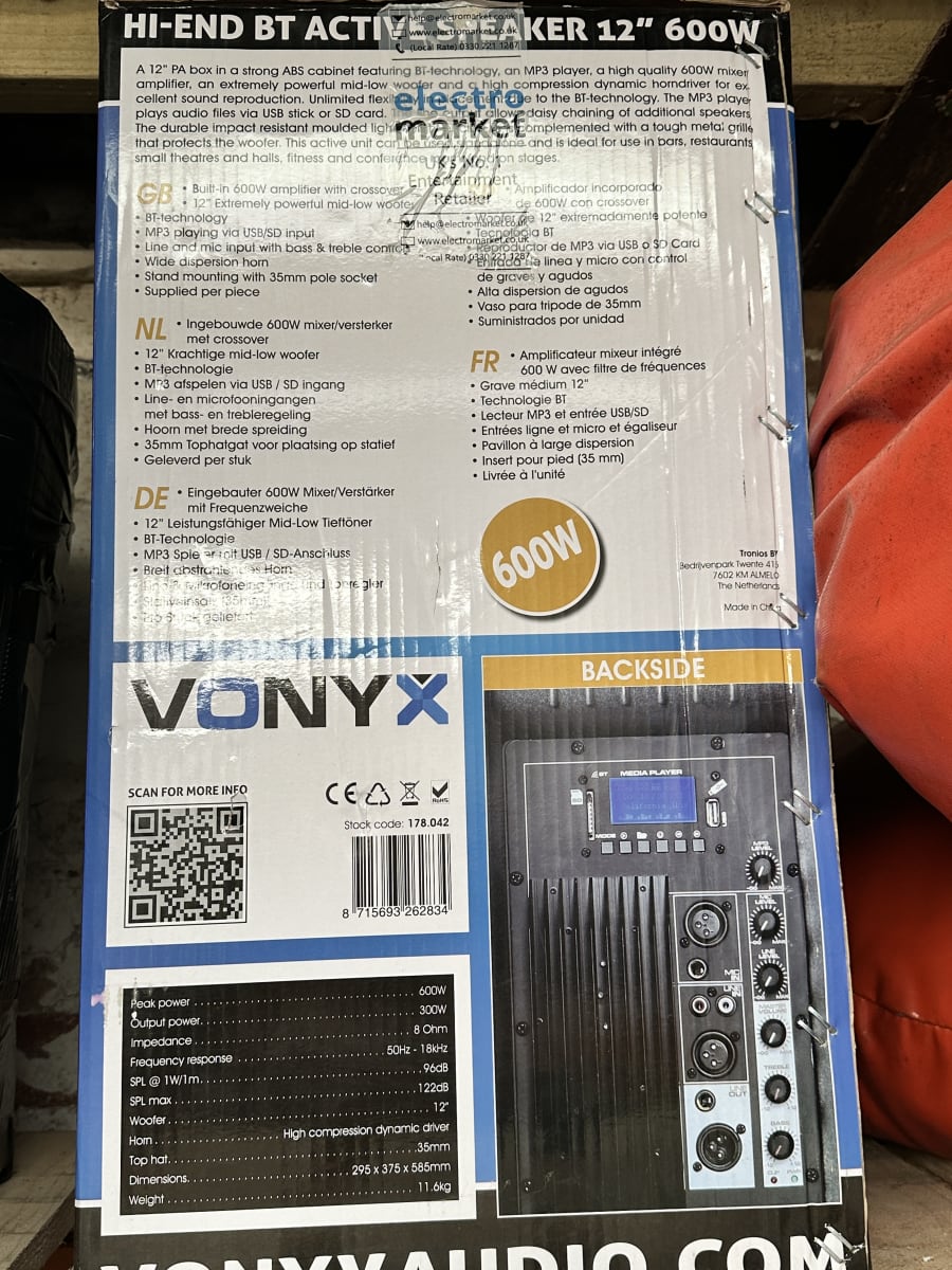Featuring a 12-inch speaker and Bluetooth connectivity, our Speaker BT 600w is not only powerful but also versatile, allowing you to easily stream music from your devices without any hassle. 🎶 Ideal for use in bars, restaurants, and small halls, this speaker is designed to provide top-notch sound quality that will keep your guests entertained throughout the event.