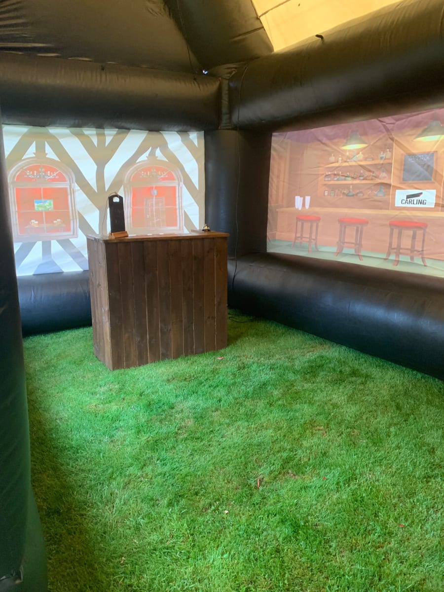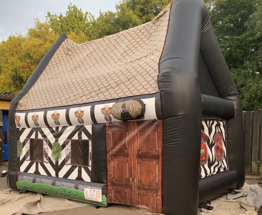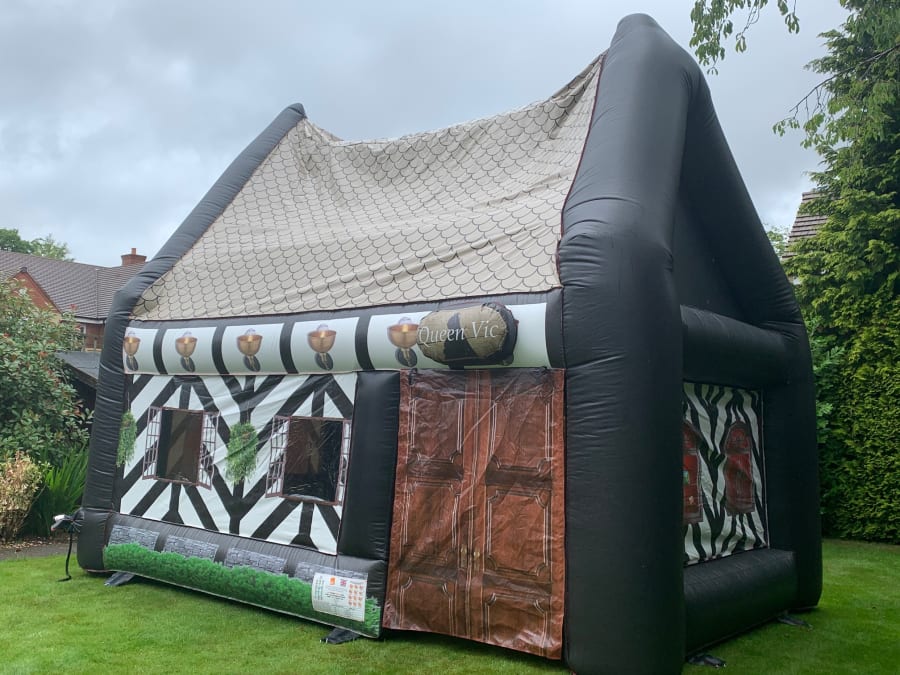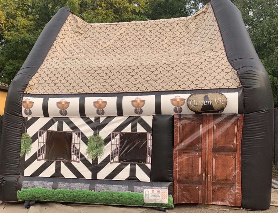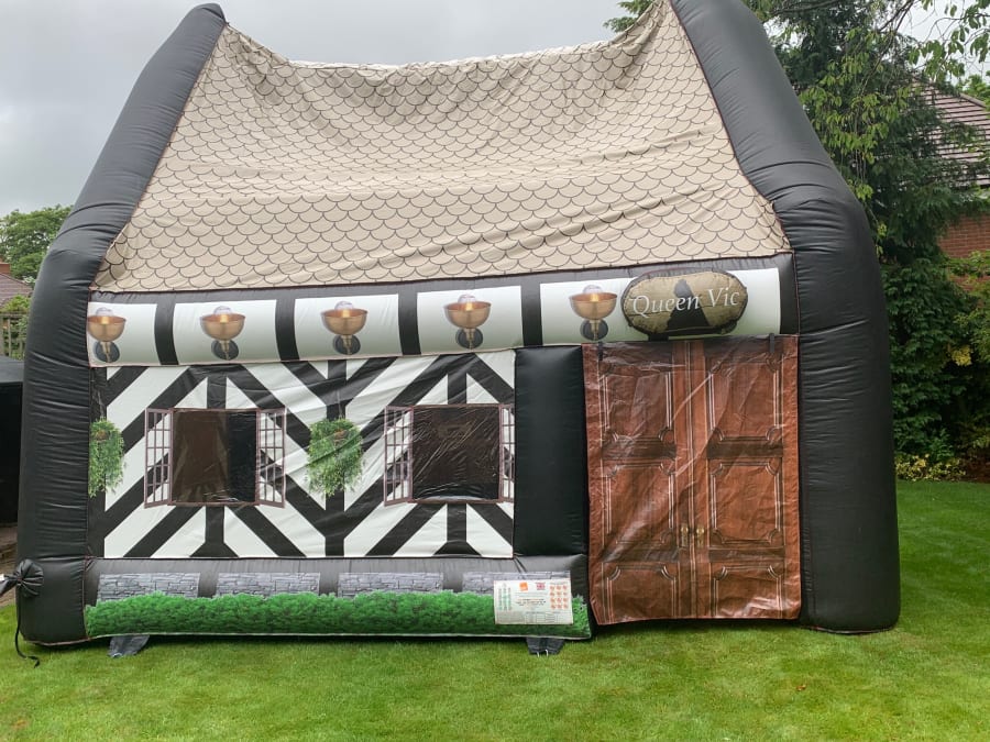 For that extra special party- treat your guests to the pop up inflatable pub "The Queen Vic" they'll love it and will make your party talk of the town. The Inflatable Pub is erected in less than 45 minutes leaving you to put the tables,music and bar in. If you want we can supply you with furniture like Tables ,benches., Rustic beer kegs and Wooden Bar. The Queen Vic will hold around 15 ( Note Tables/ Chairs & Bar not supplied) people comfortably leaving enough space for your Bar and the bartender to serve your guests. You can put seating outside in the beer garden to give you extra capacity.