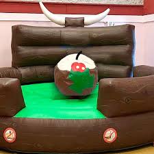 With the Rodeo Pudding, you can experience the thrill of riding a bull, but with a twist! Instead of a traditional bull, you'll be riding a giant pudding. 🎉🐄 It's a fun and safe way to challenge your balance and test your riding skills, all while having a blast with your friends and family.
