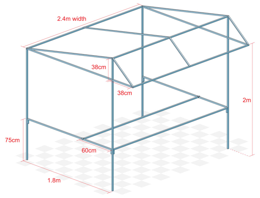 They have a strong steel frame with a flame retardant PVC covers. They have a 0.6m deep table at the front which can also be set up at the rear leaving a 1.2m deep covered area for serving from behind or in front of the table.